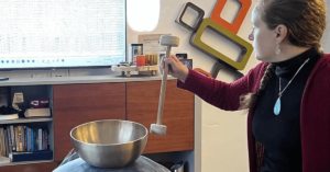 I have worked with a number of students; one in particular named Devin. Devin lives with autism, experiencing a difficulty to remain calm when he is overwhelmed by sensory input. The singing bowls support Devin through the subtle sounds, in this process he learns to trust and relax, which allows him to reset his system. The subtlety of the sound is so pleasant that Devin can finally relax and adjust his nervous system, previously in high alert.